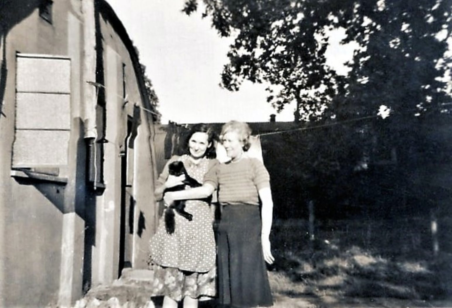 They had a black cat called Curly. See the clothesline in the background. Overall, you can tell by the pictures, they were happy days. Having been through WWII for all of those years, this was heaven in comparison to what they had been through. |