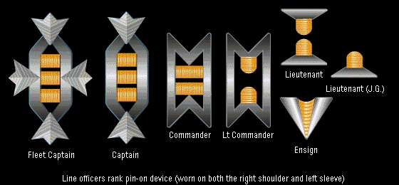 Since there can only be one ship's captain aboard Starfleet vessels, the traditional Terran Marine rank "Captain" has been replaced by the rank "Lieutenant-Major" to avoid the necessity of the courtesy rank of "Major" to such officers on modern naval vessels. Lieutenant-Major is still company grade, not field grade. 2a- Warrant Officers of the Starfleet Navy Command, Support and Medical divisions