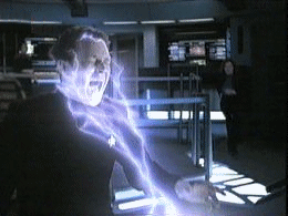 he threatens to harm the wounded Tuvok, Seven is forced into using her